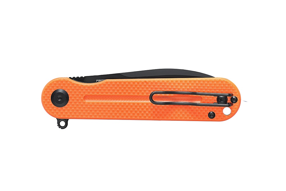 Model: FH922PT (BK/CF/GB/GY/OR) Overall length: 196 mm Blade length: 86 mm Blade thickness: 3.5 mm Blade material: D2+PVD titanium coating Blade hardness: +-60HRC Handle material: G10 Net weight: 109 g Lock: Flipper