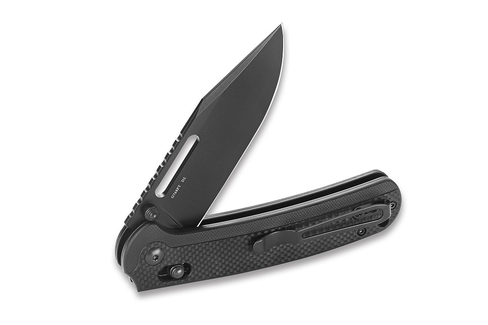 Overall length: 205 mm Blade length: 88 mm Handle length: 117 mm Handle thickness: 12.7 mm Blade thickness: 3 mm Blade material: D2+PVD titanium coating Blade hardness: +-60HRC Handle material: G10 Net weight: 116.9 g Lock: Axis lock